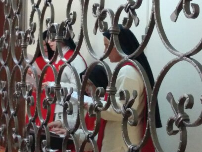 Quest'anno i ragazzi del Liceo, in occasione del ritiro di Natale, sono andati a sentire la testimonianza delle Suore di clausura: le Adoratrici Perpetue, il cui Istituto prende la propria fisionomia e il proprio spirito caratteristico dall’Eucaristia.